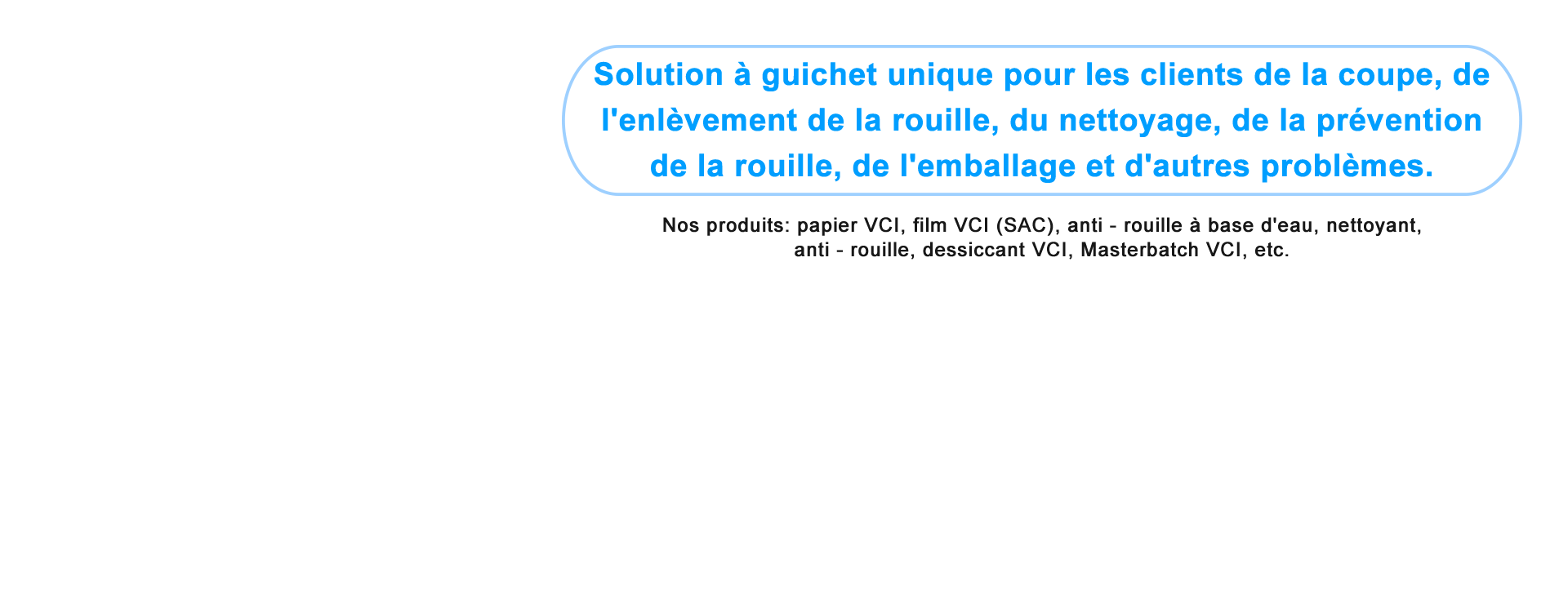 La technologie VCI offre une solution efficace pour protéger l’acier inoxydable de la corrosion dans les environnements difficiles. En libérant des inhibiteurs en phase vapeur, les produits VCI créent une barrière protectrice qui empêche l'humidité, les produits chimiques et les températures extrêmes d'endommager les surfaces métalliques. Cette technologie est idéale pour les secteurs comme l’aérospatiale, la fabrication et la marine, où les équipements sont exposés à des conditions difficiles. Les films, liquides et sacs VCI offrent une protection durable et respectueuse de l'environnement, réduisant les coûts de maintenance et prolongeant la durée de vie des composants métalliques. Grâce à sa capacité à prévenir les types de corrosion courants tels que la corrosion par piqûre et la corrosion galvanique, la technologie VCI est un outil essentiel pour protéger l'acier inoxydable.