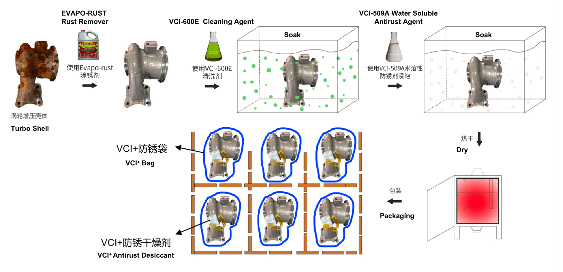 1. Reconcevoir l'ensemble du programme de nettoyage et antirouille, en utilisant un emballage antirouille sans huile.